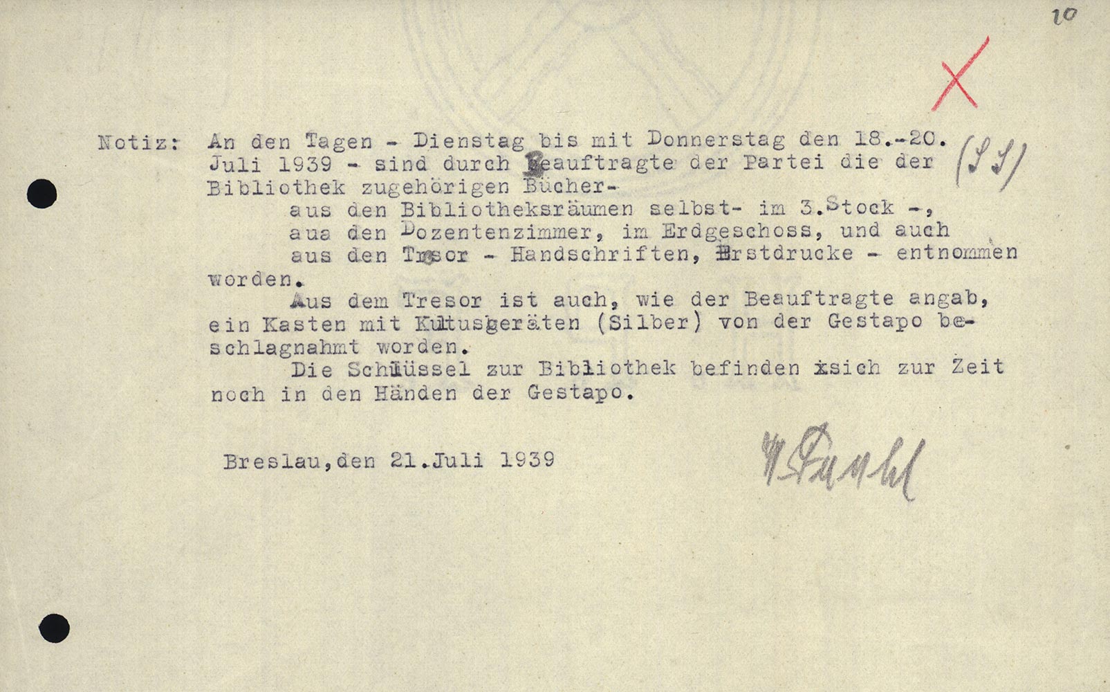 Księgozbiór seminarium razem z około 46 tysiącami innych żydowskich książek z Wrocławia wywieziono do Berlina. Zagrabione judaika wcielono do Biblioteki Centralnej Głównego Urzędu Bezpieczeństwa Rzeszy jako część „biblioteki wroga”. Pozostawały tam do 1943 roku, gdy alianckie naloty zmusiły nazistów do ewakuacji zbiorów na teren Dolnego Śląska, południowych Niemiec i Czech. W wojennej zawierusze zbiory biblioteki Żydowskiego Seminarium Teologicznego uległy rozproszeniu. Jeden z transportów trafił do Pragi, gdzie planowano utworzenie muzeum „zaginionej rasy”.
