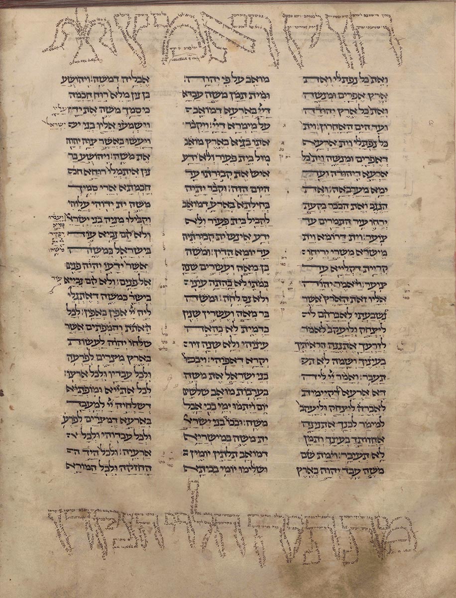 The first major Jewish literary work was the Hebrew Bible, referred to as Tanakh, from the first letters of its three parts: Torah (Teaching), Nevi’im (Prophets), and Ketuvim (Writings). The Saraval Collection contains five medieval biblical manuscripts as well as one very early printed Bible. Only one of the codices contains a complete text of the Hebrew Bible. The others contain only selected canonical books (e.g., the Torah or the Five Scrolls). Three of the codices also contain an Aramaic translation, the so-called Targum Onkelos.